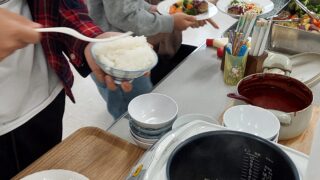 2024年11月16日㈯ハンバーグはさすがに飽きたかなあ?ということで新メニュー、季節感を生かした「混ぜご飯、雪菜の海苔和え、芋煮汁(みやぎバージョン)」にしてみました。雪菜はおひたしにして、水分をぎゅぎゅっと絞っていただき、さっと炙ったもみ海苔で和えた一品で、旬のみずみずしい美味しさと相まって10束の雪菜があっという間になくなっていました。芋煮はとろりとした具沢山の美味しさで、混ぜご飯も優しいお味に仕上げていただきました。今回は一人のお子さんがスタッフ側でお手伝いくださり、使い終わったテーブルを拭いたり麦茶の準備なども含め、最後のご挨拶までお付き合いしてくれました。そのお子さんは、ボランティアさんたちの間に座って一緒にご飯を食べたり、おしゃべりしたり・・・すっかり馴染んで過ごす姿がありました(涙)。ボランティアさんたちもまた、一か月ぶりに会えた仲間と共に、調理と姦しいほどのおしゃべりを同時進行しておいででした♪ご尽力をくださる方々と参加してくださる方それぞれの、居場所の一つにらっこ広場がなってきたのだなあと思える景色でした。